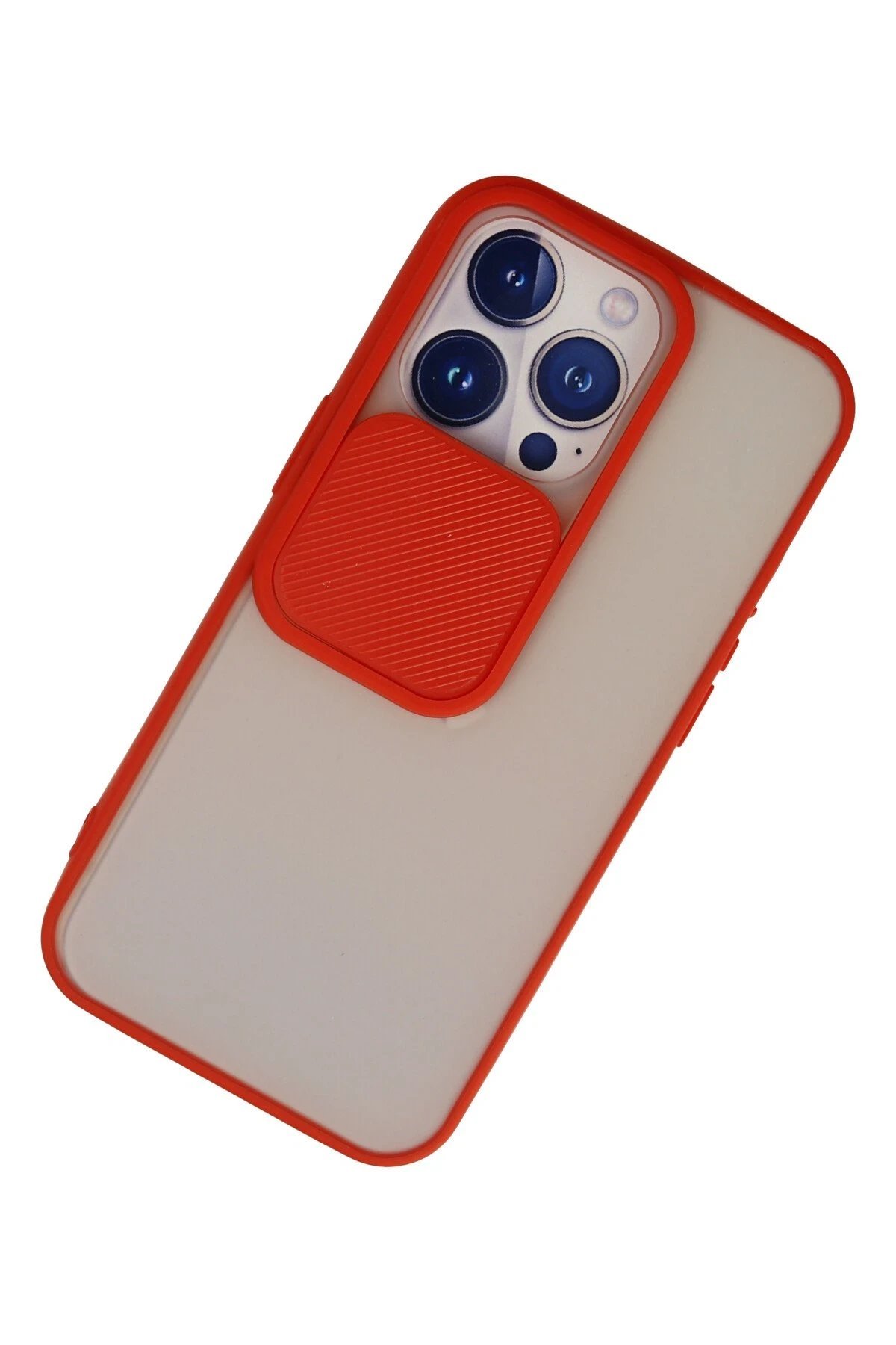 iPhone 13 Pro Kılıf Palm Buzlu Kamera Sürgülü Silikon - Kırmızı-(5796)