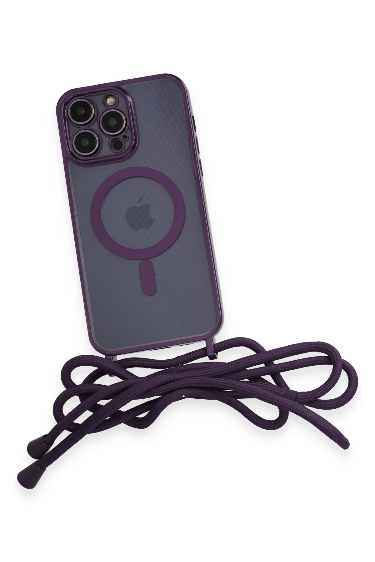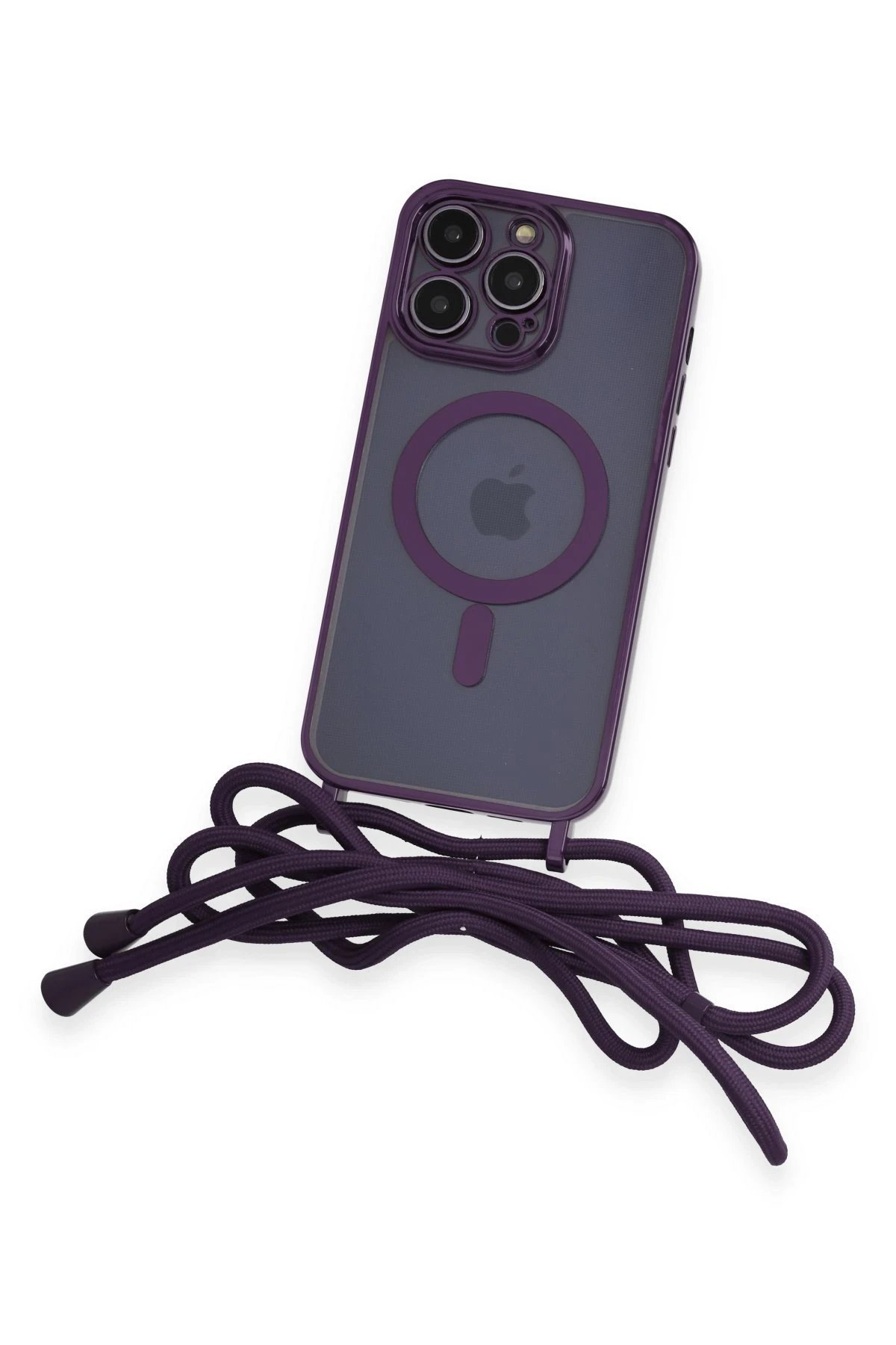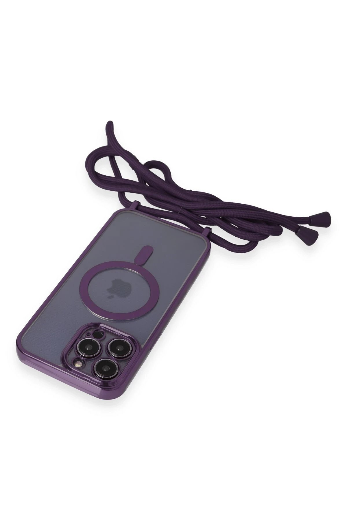 iPhone 13 Pro Max Kılıf Divo Lazer Askılı Magsafe Kapak – Derin Mor-(5796)
