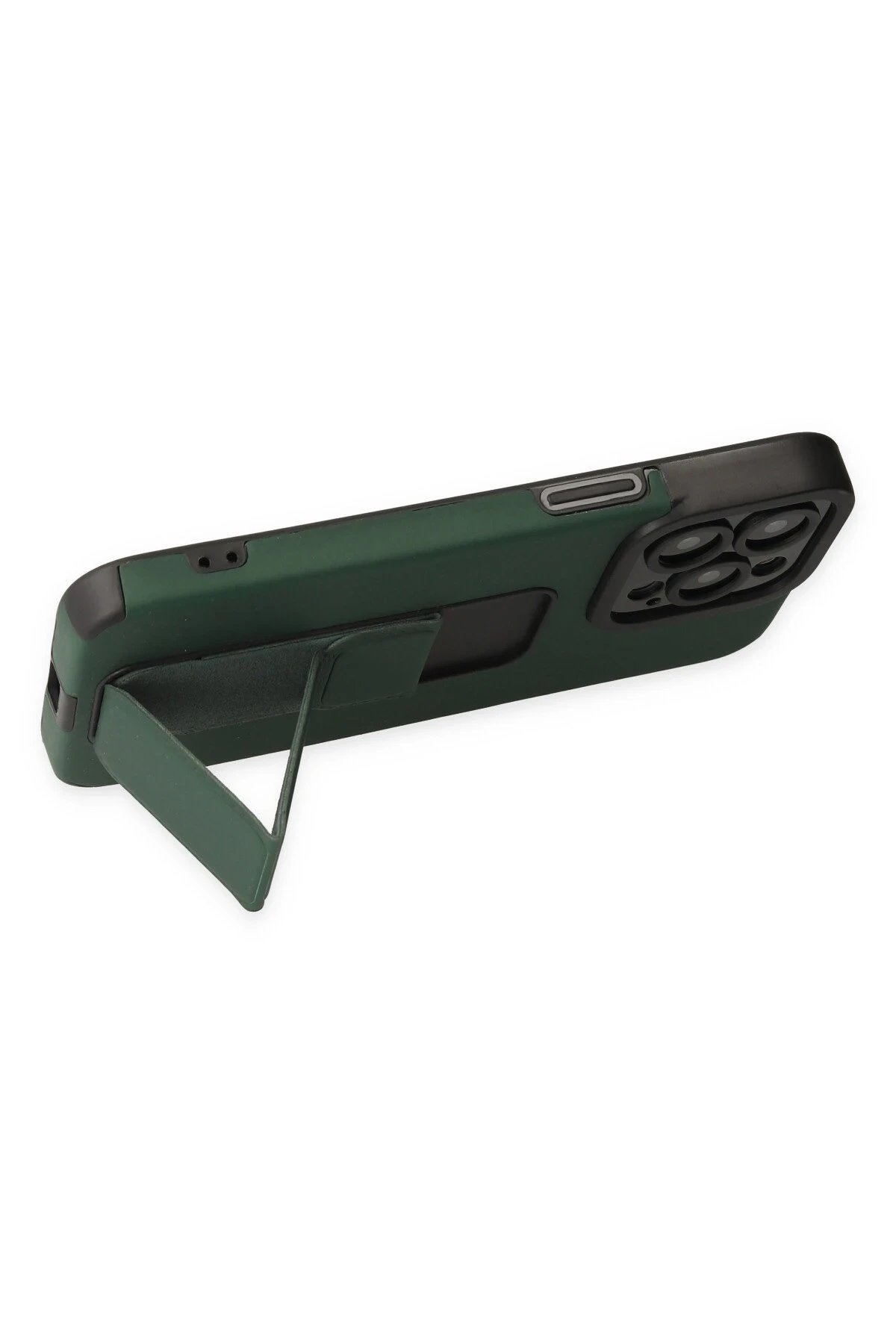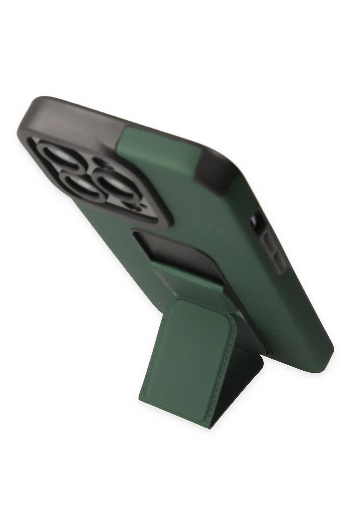 iPhone 14 Pro Kılıf Mega Standlı Silikon - Yeşil-(5796)