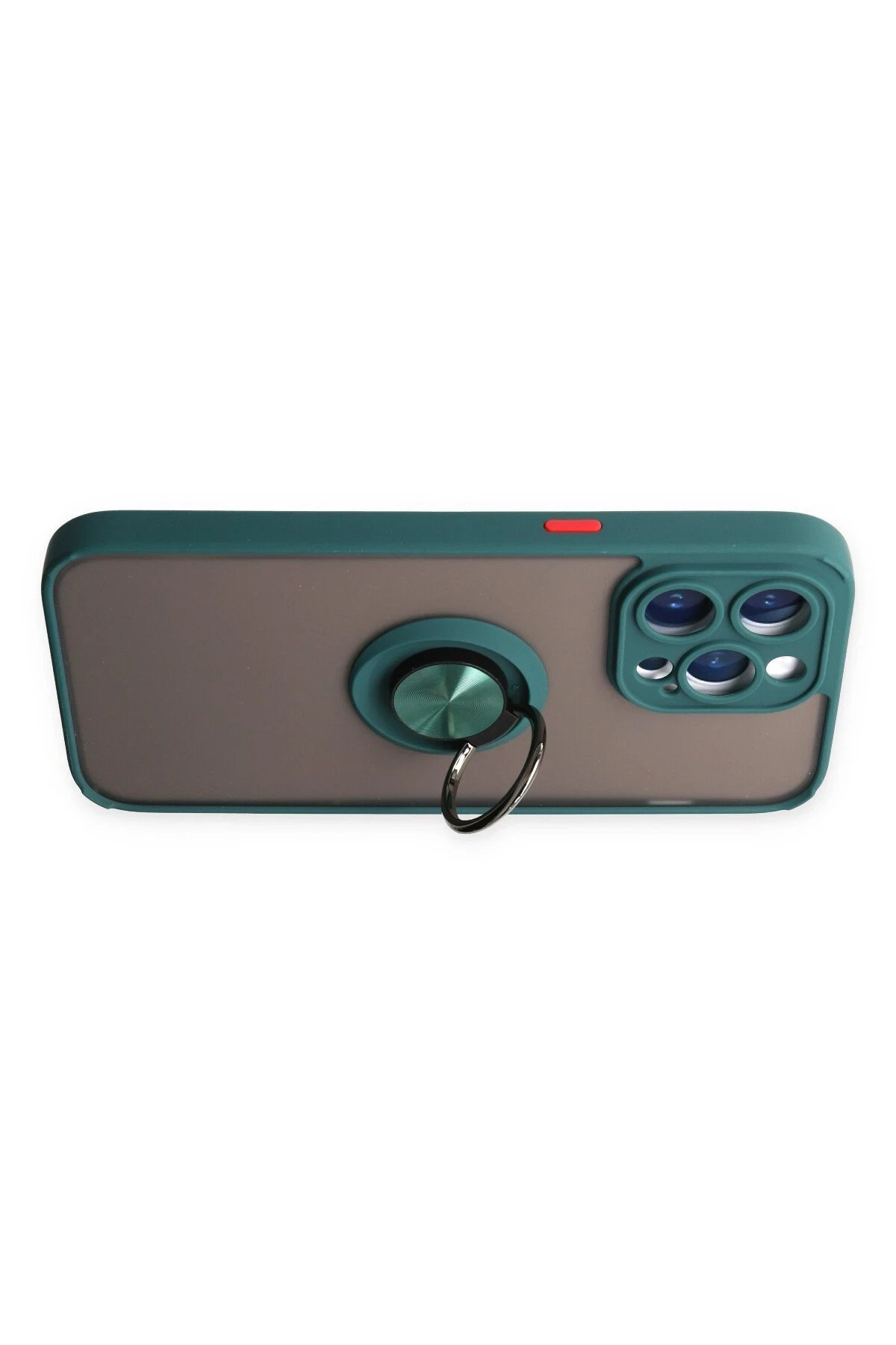 iPhone 14 Pro Max Kılıf Montreal Yüzüklü Silikon Kapak - Yeşil-(5796)