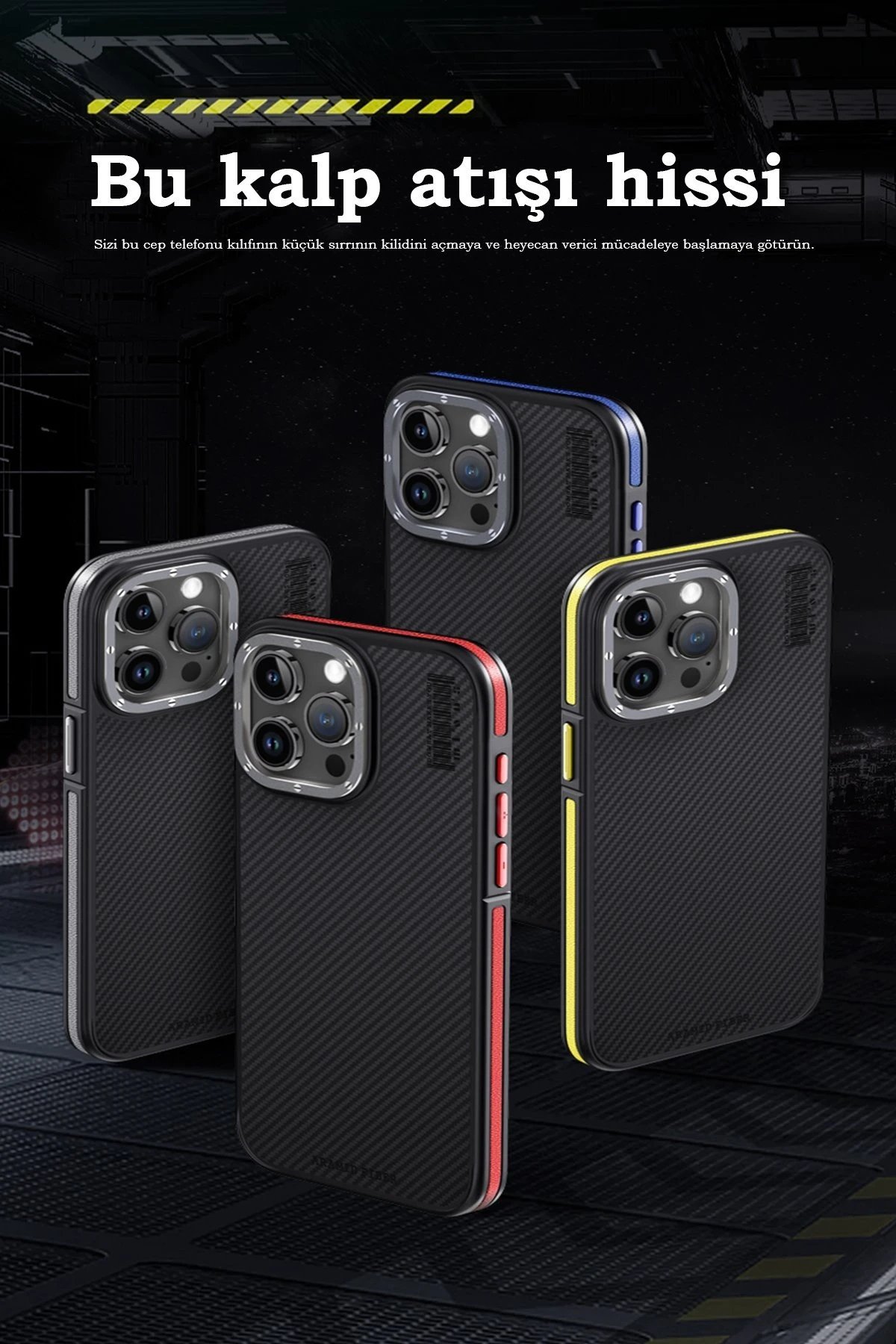 iPhone 15 Pro / 15 Pro Max Kılıf Aramid 600D Kevlar Karbon Fiber Magsafe Kapak