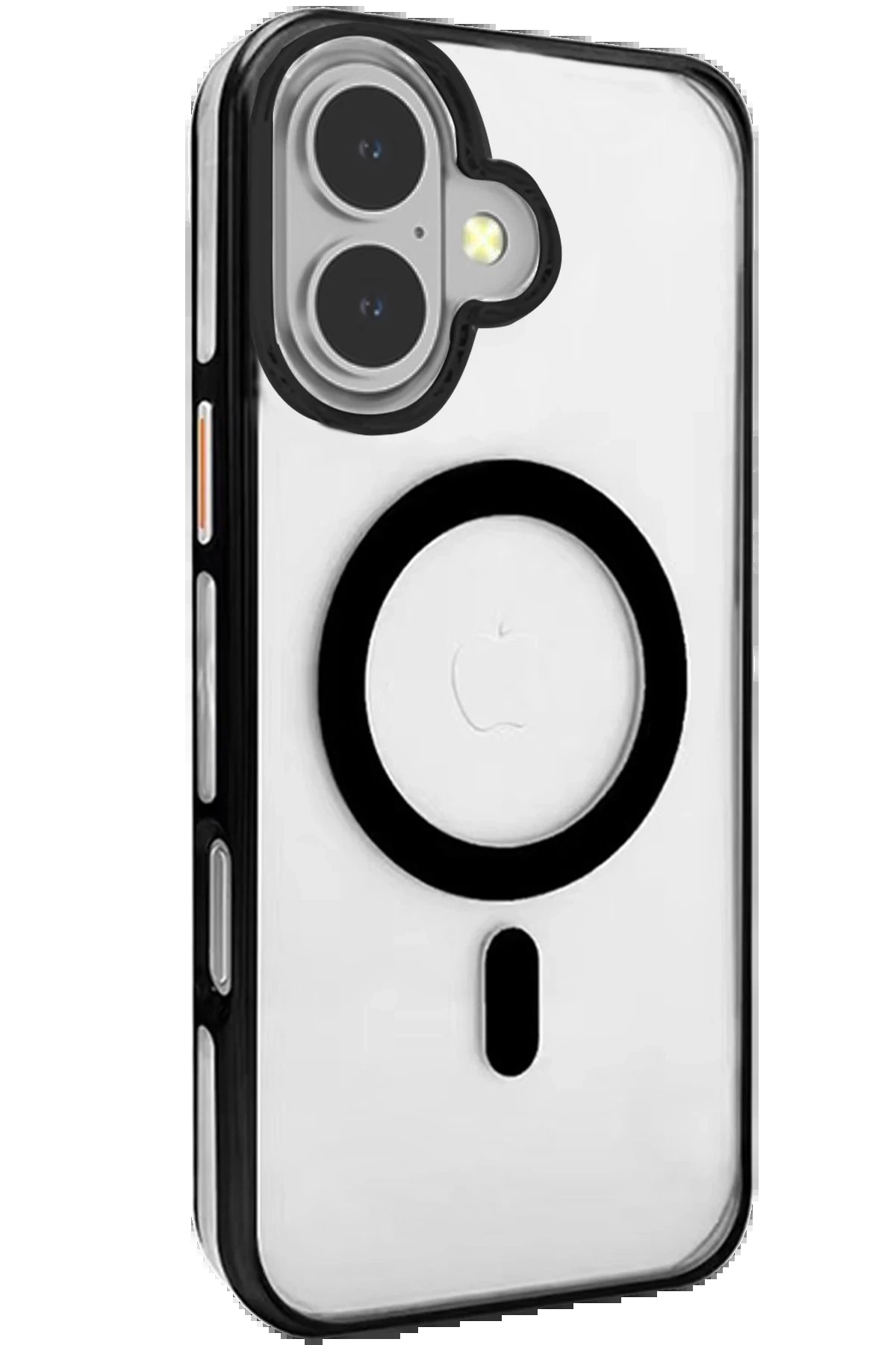 iPhone 16 Gleam PC Sert Magsafe Kılıf – Şeffaf-Siyah-(5796)