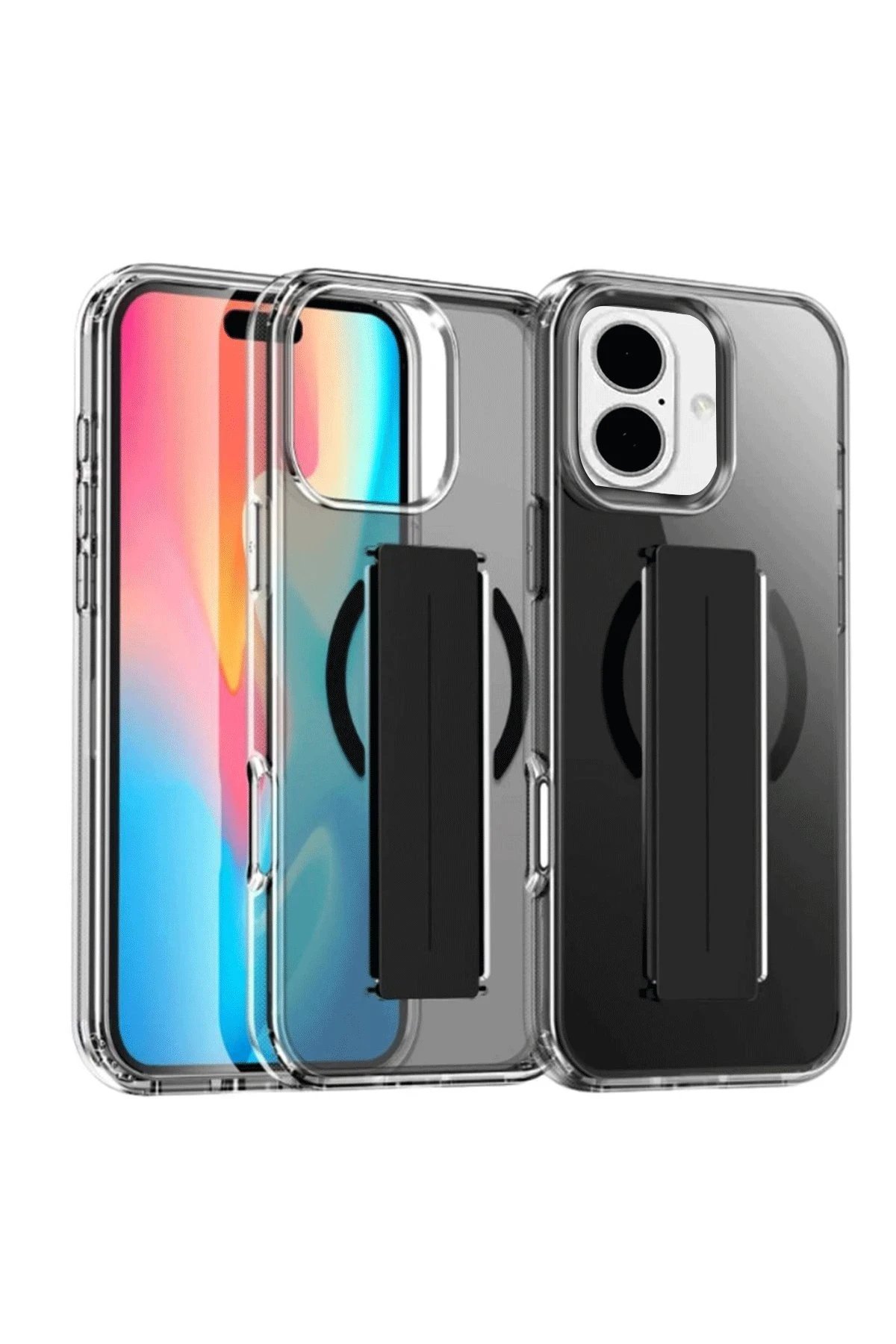 iPhone 16 Kılıf Alfa Magsafe Standlı Kapak – Siyah-(5796)