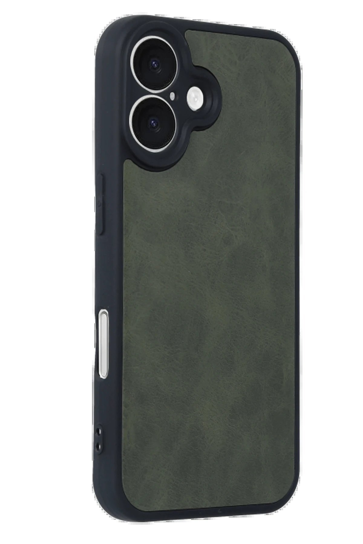 iPhone 16 Kılıf Aras Deri Kapak – Koyu Yeşil-(5796)