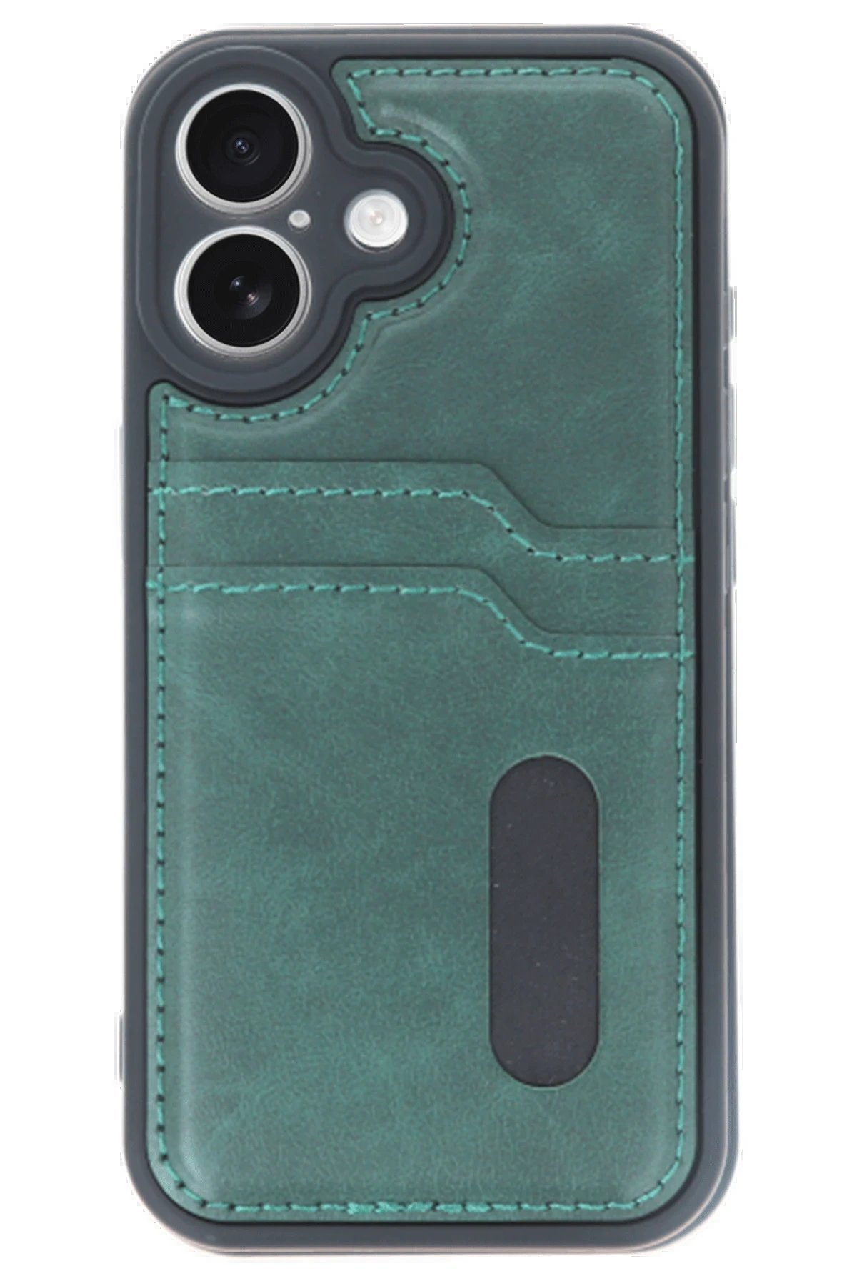 iPhone 16 Kılıf Sara Kartvizitli Deri Kılıf – Koyu Yeşil-(5796)