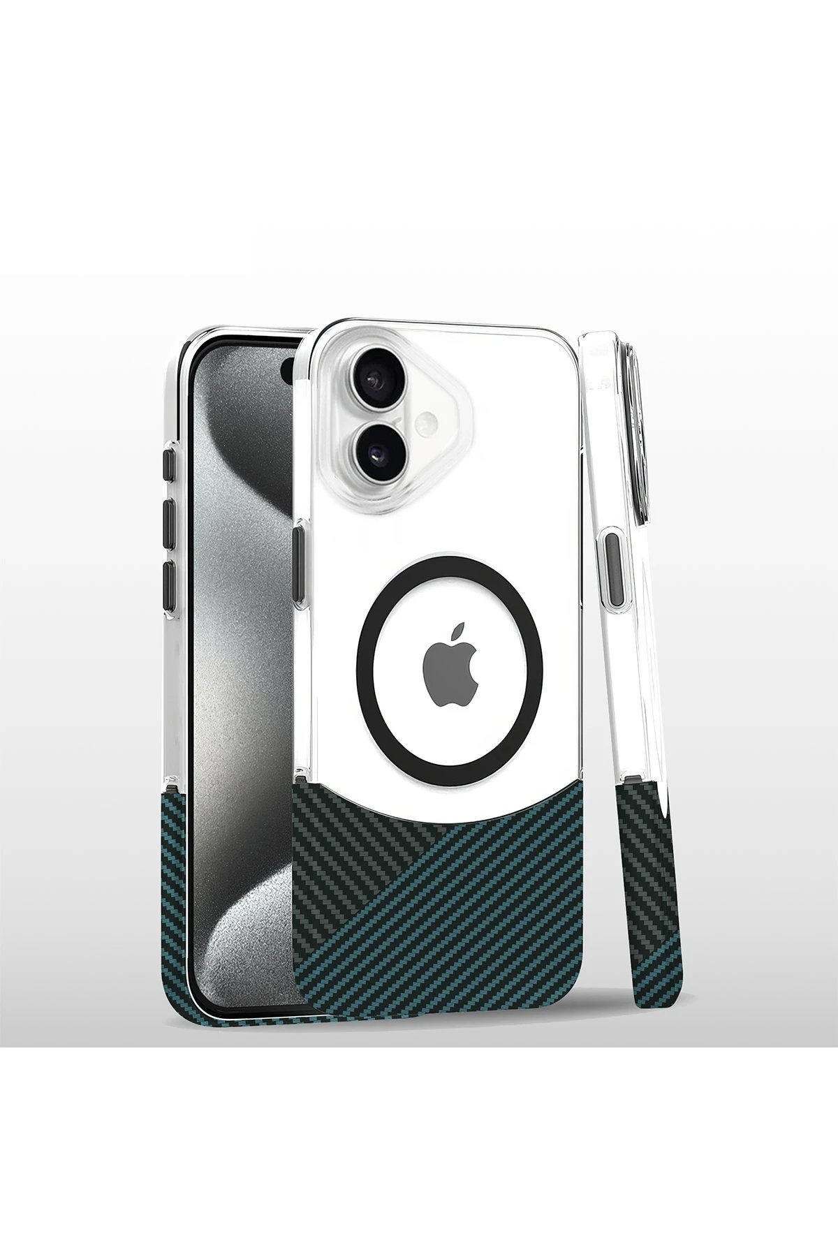 iPhone 16 Plus Carbon Puzzle Magsafe Kapak – Açık Mavi-(5796)