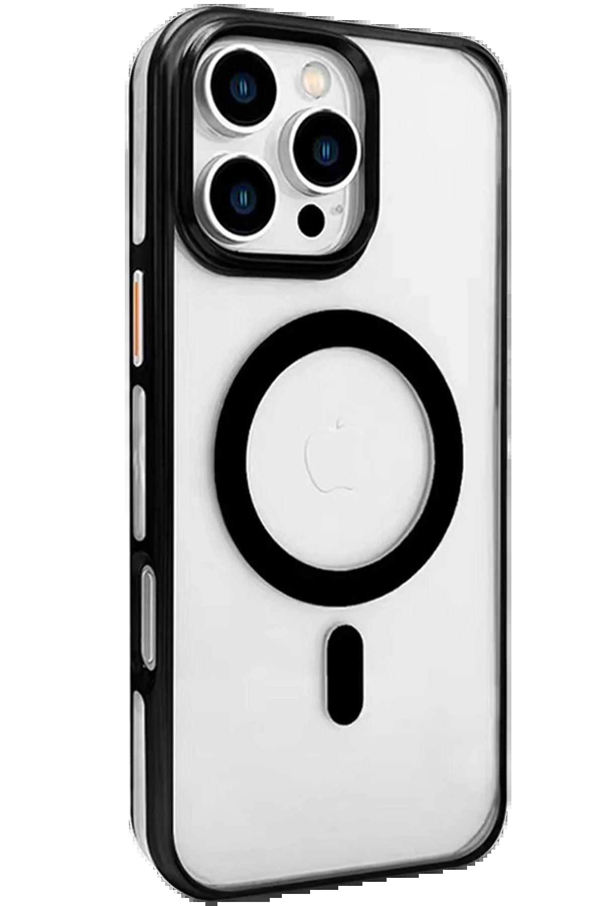 iPhone 16 Pro Gleam PC Sert Magsafe Kılıf – Şeffaf-Siyah-(5796)