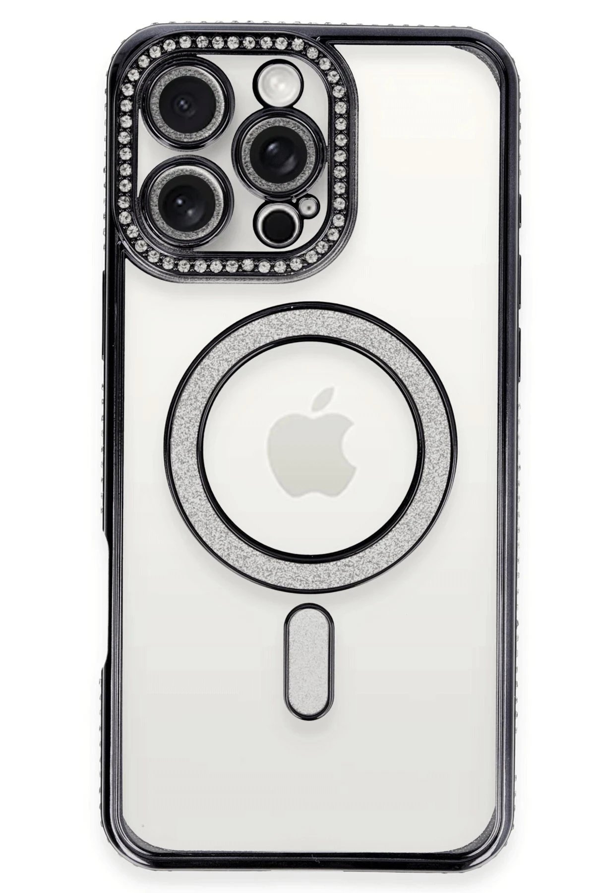 iPhone 16 Pro Kılıf Joke Simli Magneticsafe Kılıf – Siyah-(5796)