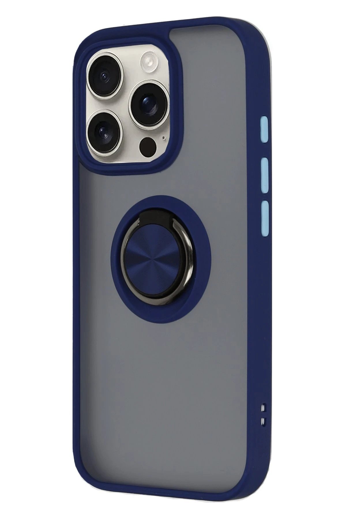 iPhone 16 Pro Kılıf Montreal Yüzüklü Silikon Kapak - Lacivert-(5796)