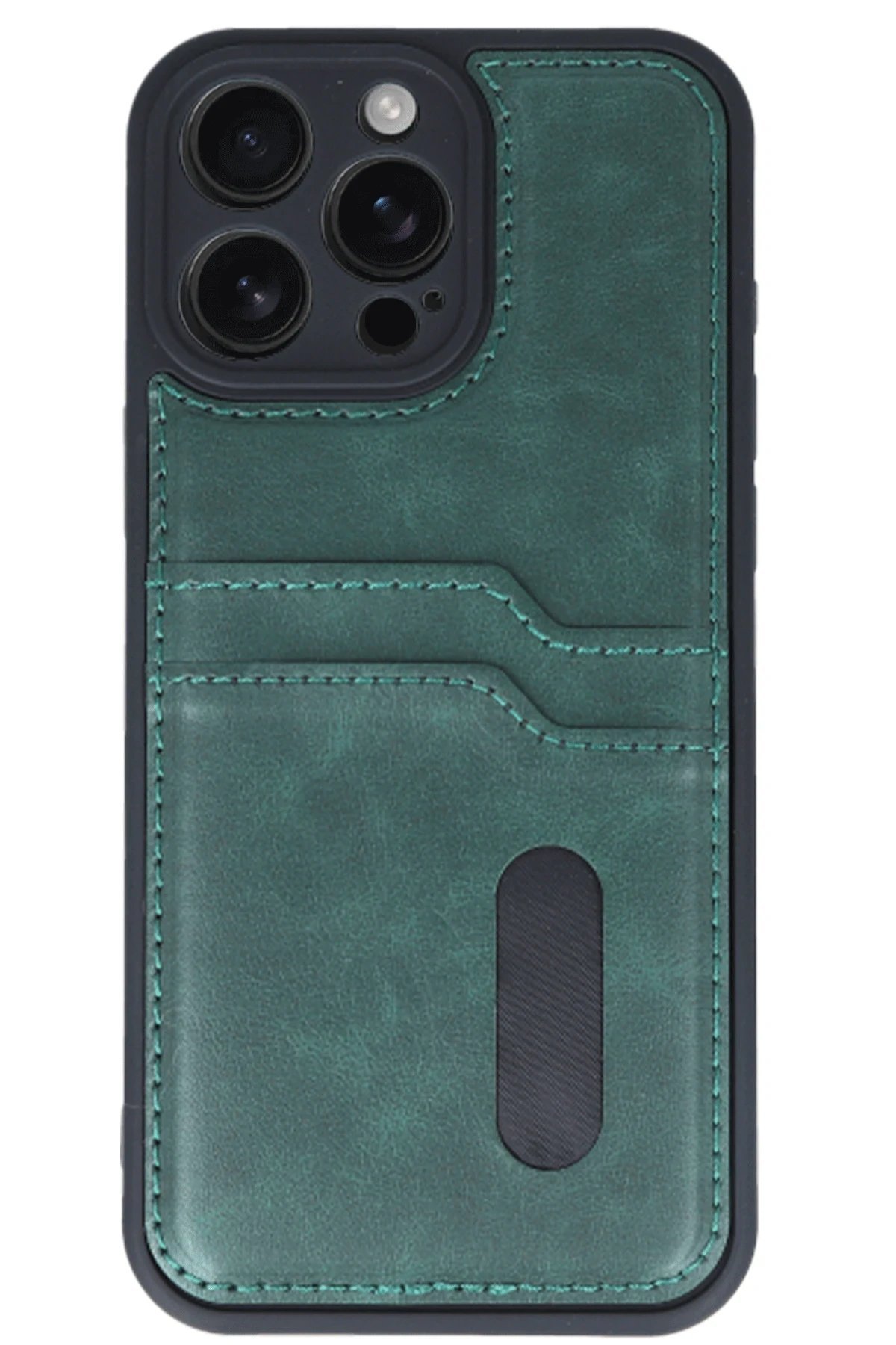 iPhone 16 Pro Kılıf Sara Kartvizitli Deri Kılıf – Koyu Yeşil-(5796)