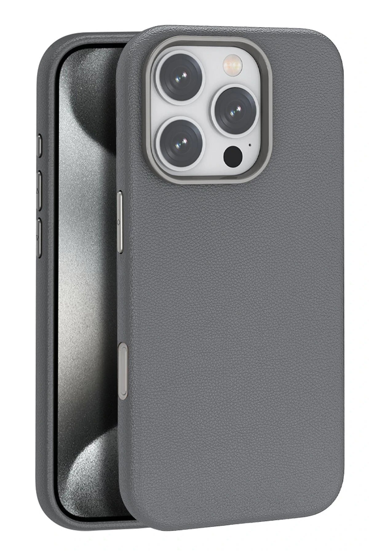 iPhone 16 Pro Max Wonder Deri Magsafe Kapak – Titan Gri-(5796)