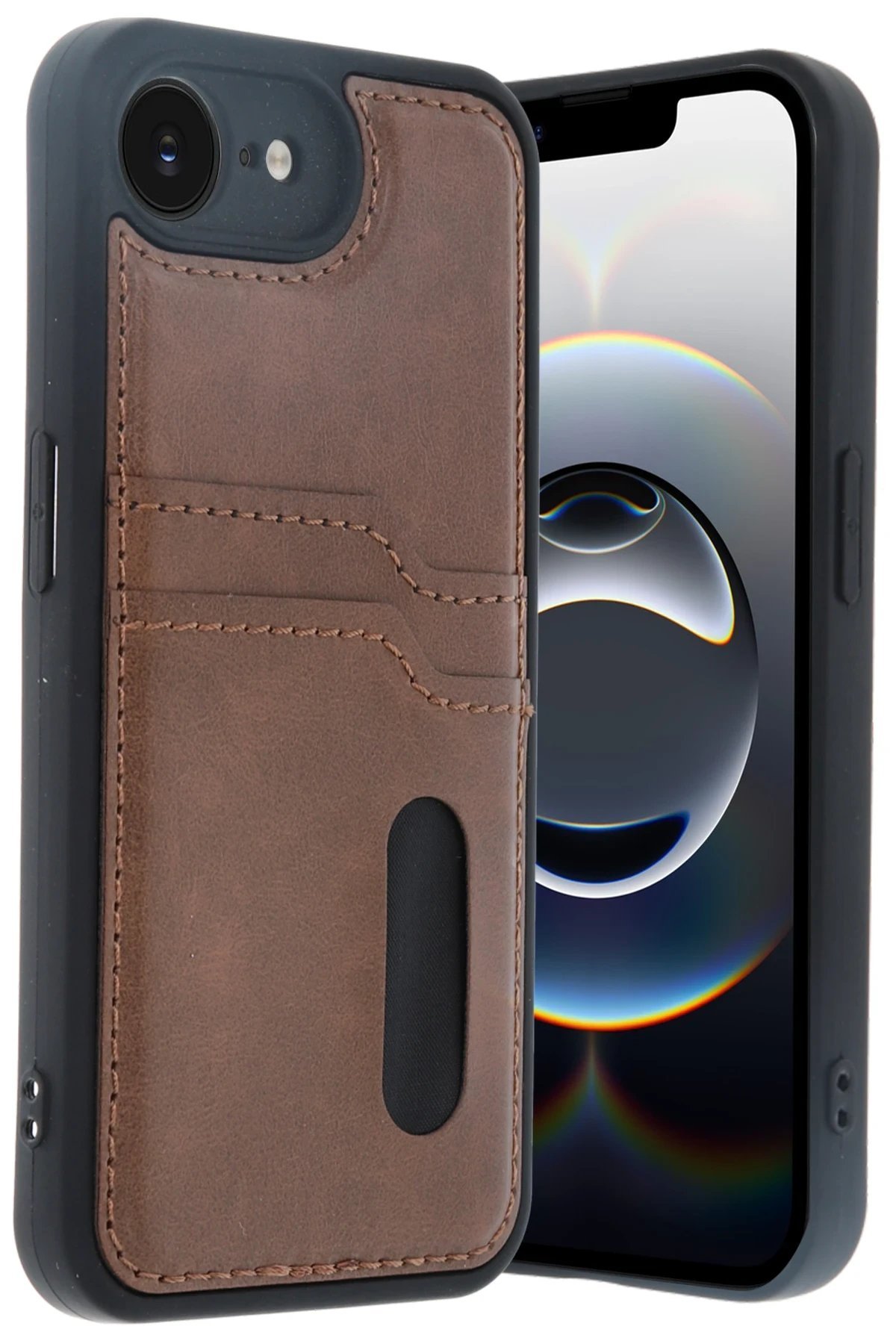 iPhone 16E Kılıf Sara Kartvizitli Deri Kılıf – Taba-(5796)