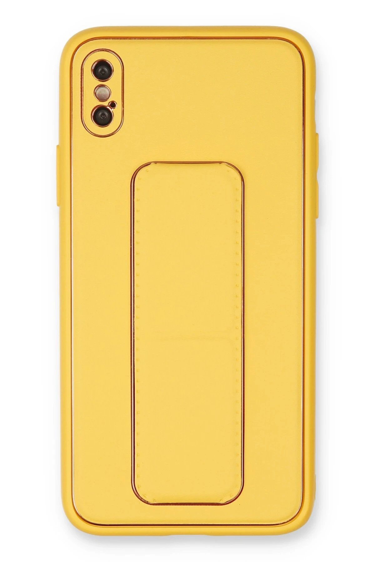 iPhone XS Max Kılıf Coco Deri Standlı Kapak – Sarı-(5796)