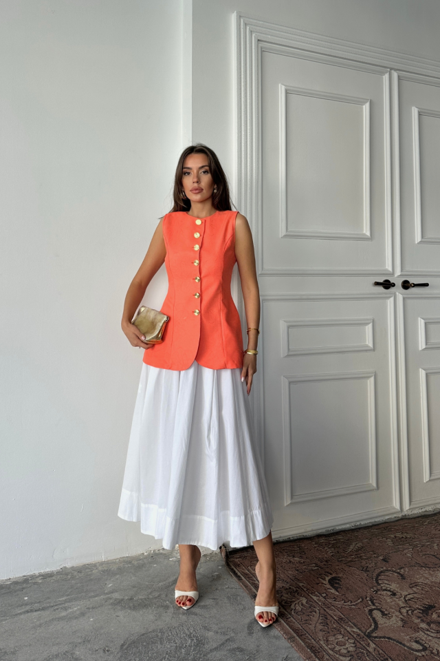 JAKAR KETEN YELEK BELDEN OTURTMALI GOLD DÜĞMELİ – Orange