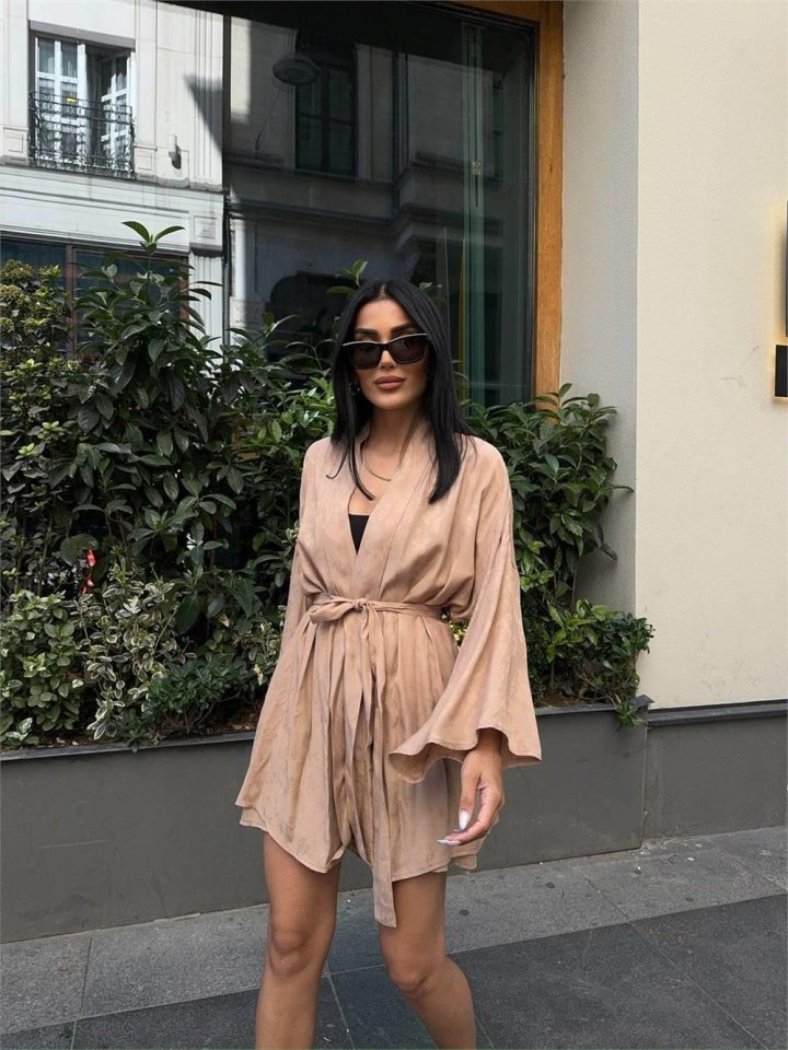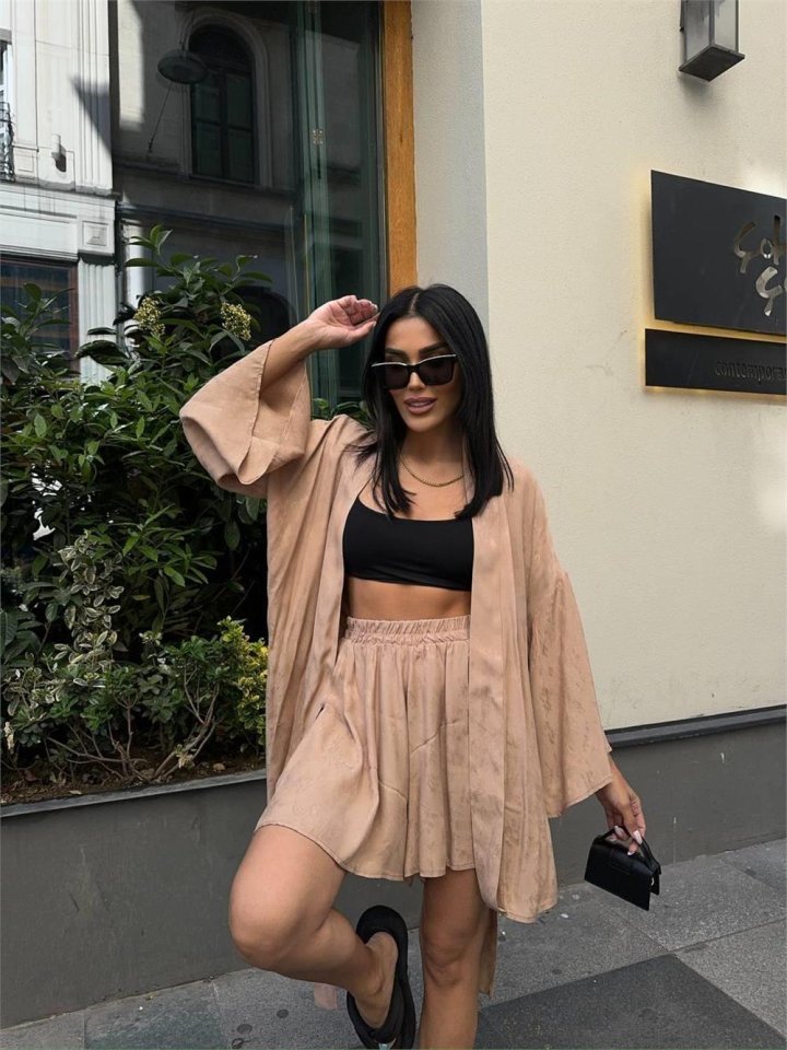 JAKARLI KİMONO – ŞORT TAKIM – Bej