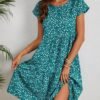 Kadın Askılı Belden Bağlamalı Geometrik Desen Krep Elbise