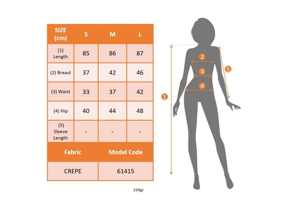 Modelin Ölçüleri: Boy:165, Kg:55, Göğüs:90, Bel:72, Kalça: 100