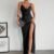 Kadın Askılı Kruvaze Yakalı Yırtmaçlı Krep Elbise