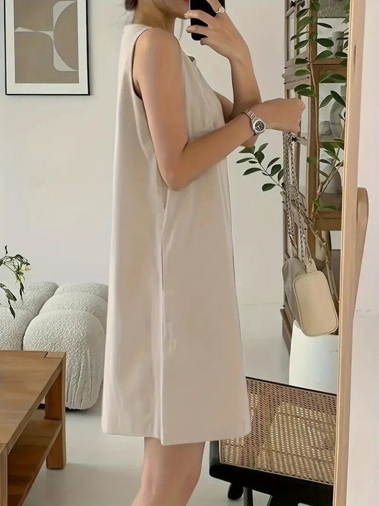 Kadın Askılı Sıfır Kol A Kesim Detaylı Ithal Krep Elbise