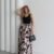 Kadın Askılı Yuvarlak Yaka üst Viskon Alt Desenli Uzun Süprem Elbise