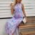 Kadın Askılı Yuvarlak Yaka Yandan Yırtmaçlı Uzun Süprem Elbise