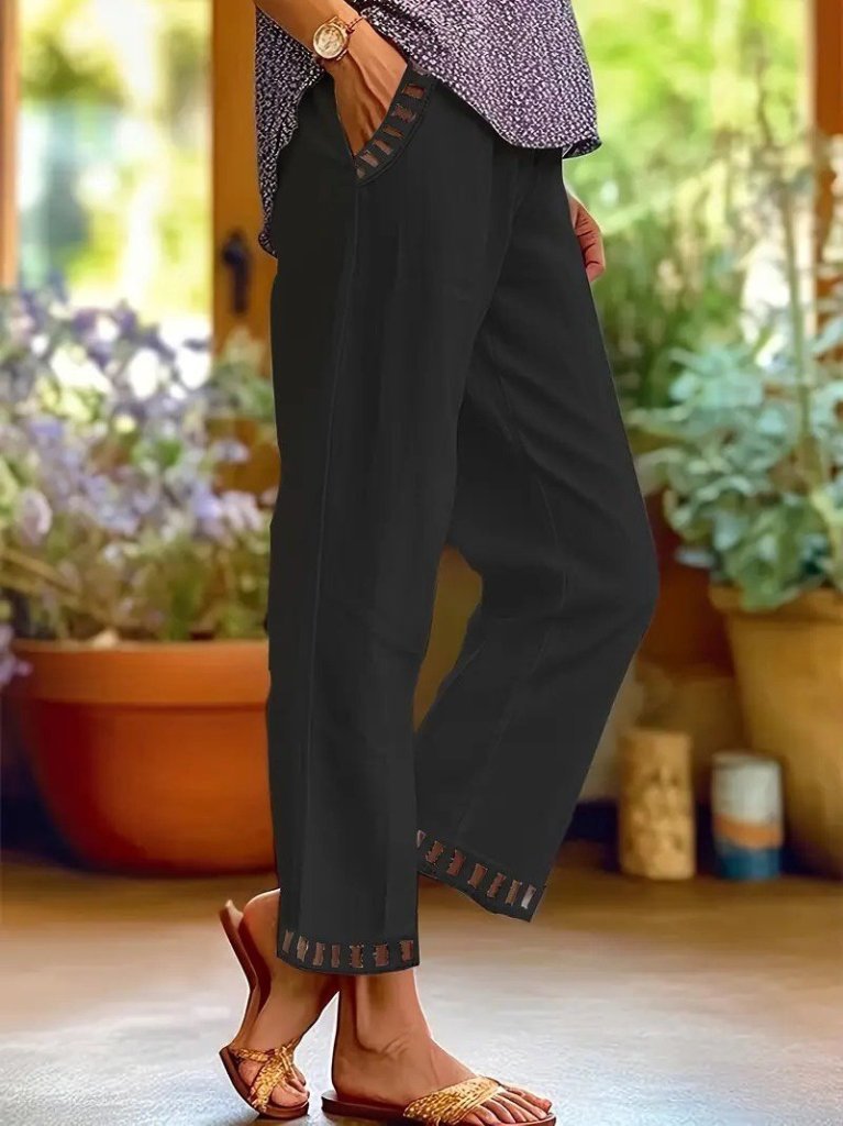 Kadın Beli Lastikli Bağcıklı Cep Ve Pantolon Ucu Güpür Detaylı Pantolon