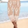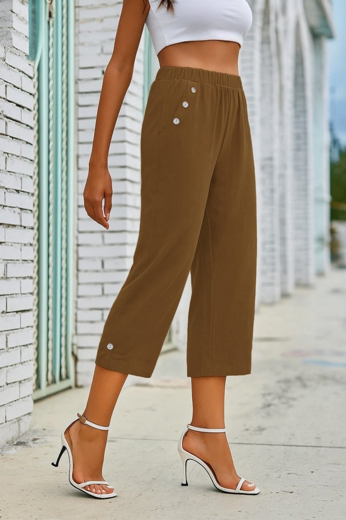 Kadın Beli Lastikli Düğme Ve Cep Detaylı Kapri Ithal Keten Pantolon