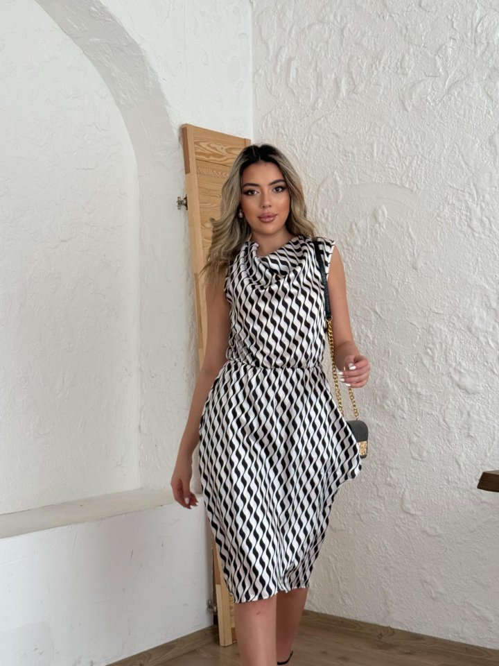 Kadın Degaje Yaka önden çapraz Detay Saten Midi Elbise