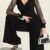 Kadın Derin V Yaka Kolları Puantiyeli Tül Detay Ispanyol Paça Tulum