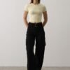 Kadın Düğme Detay Bol Paça Ithal Krep Pantolon