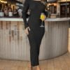 Kadın Halter Yaka Simli Kumaş Sırtı Bağcık Detay Prenses Elbise
