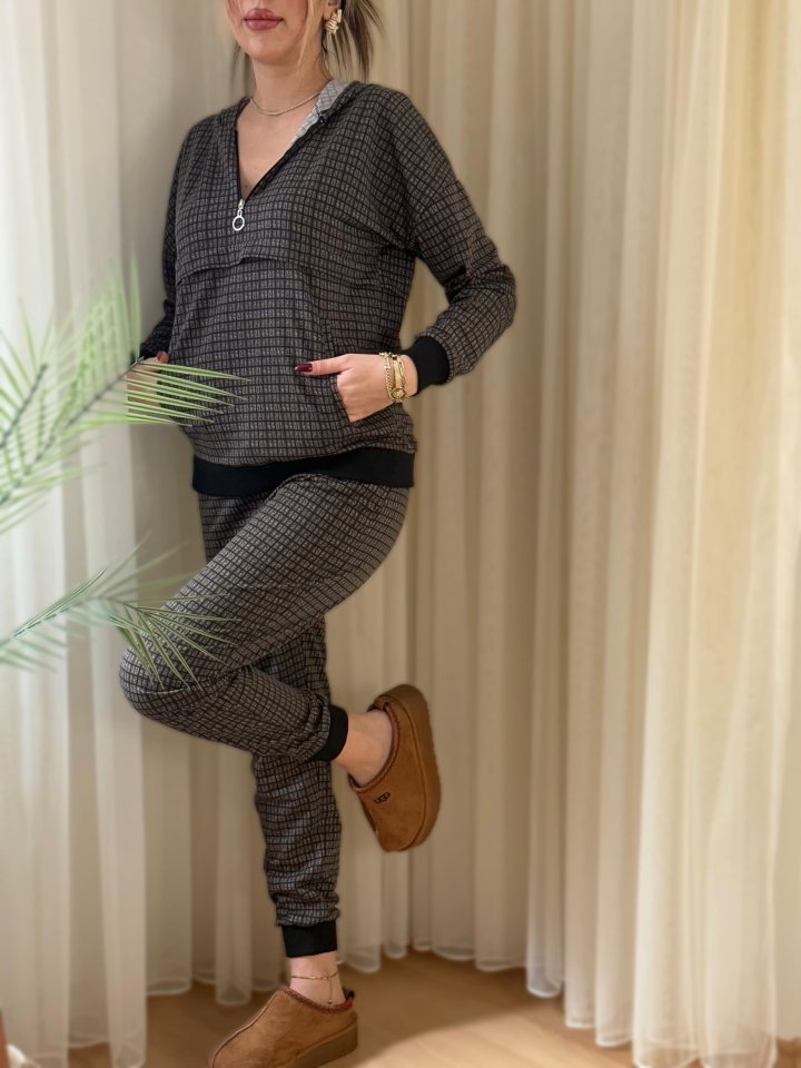 Kadın Iki Iplik Kumaş Fermuar Detay Kapüşonlu Ikili Takım