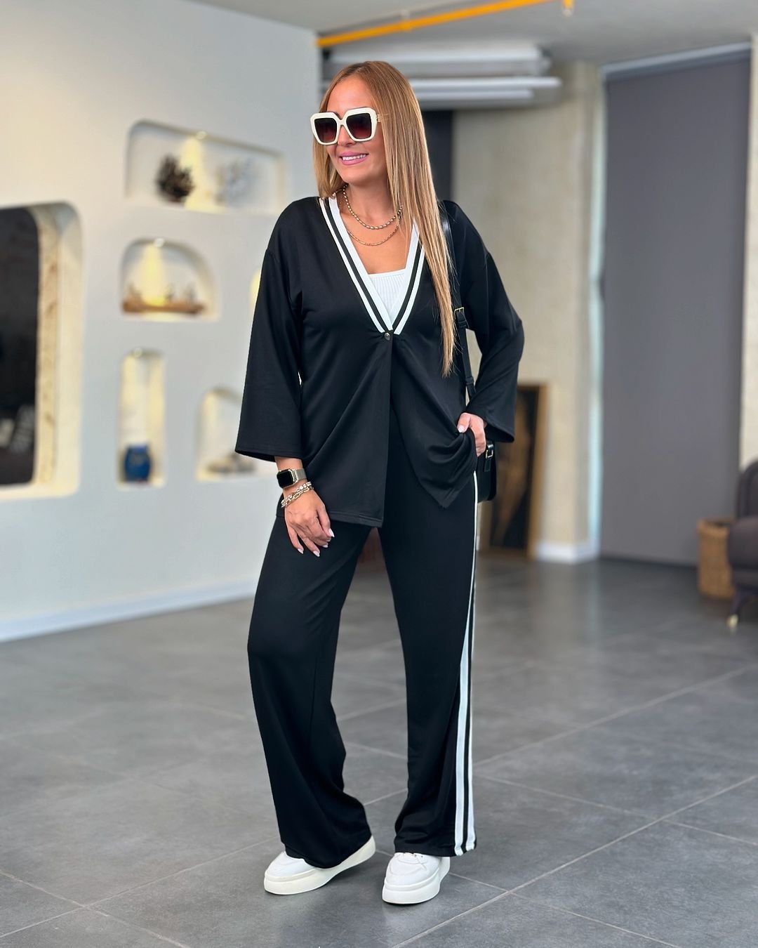 Kadın Iki Iplik Penye Kumaş çıtçıt Detaylı Ribanalı Ikili Takım