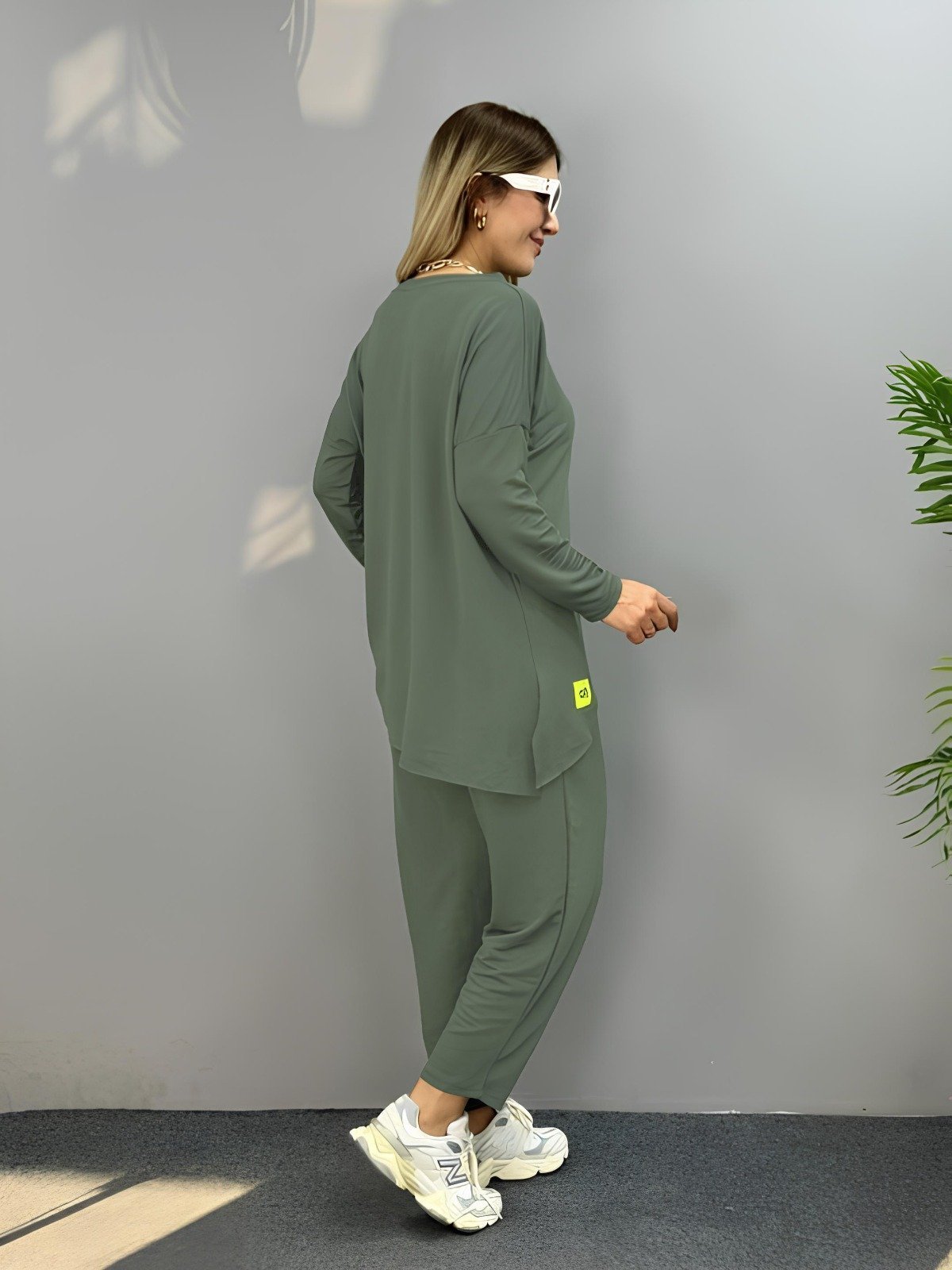 Kadın Iki Iplik Viskon Pamuk Kumaş Arma Detaylı Ikili Takım