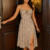 Kadın Ip Askılı Desenli Yırtmaçlı Süprem Midi Elbise