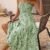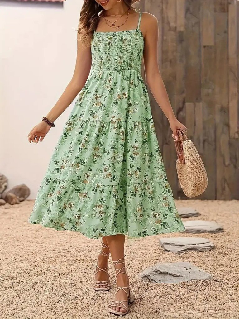 Kadın Ip Askılı Geniş V Yakalı Desenli Uzun Süprem Elbise