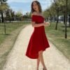 Kadın Ithal Krep Kumaş Kruvaze Yaka Eteği Kloş Kolsuz Midi Elbise