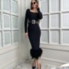 Kadın Kare Yaka Fitilli Kaşkorse Kumaş Midi Boy Elbise