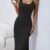 Kadın Kare Yaka Yandan Yırtmaçlı Fitilli Kaşkorse Dizaltı Boy Elbise