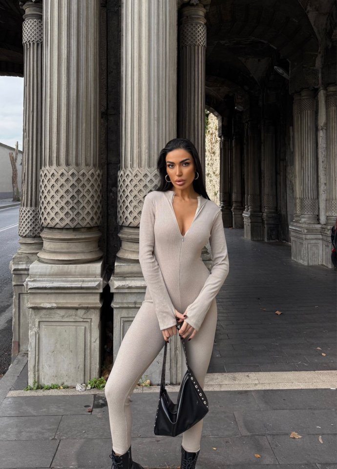 Kadın Kaşkorse Kumaş Fermuar Detaylı Tulum