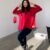 Kadın Kırmızı Kapşonlu Etek Ucu Detay Arma Ters Dikiş Gorunumlu Ikili Takım