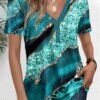Kadın Kısa Dantel Kollu önden Düğmeli Viskon Elbise