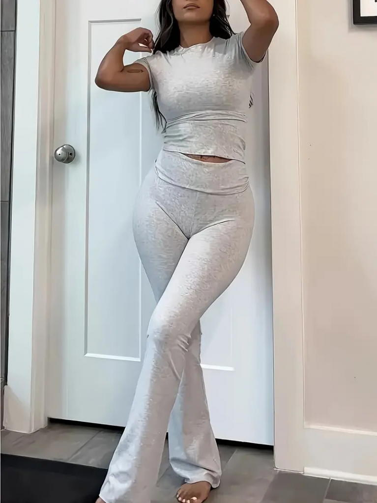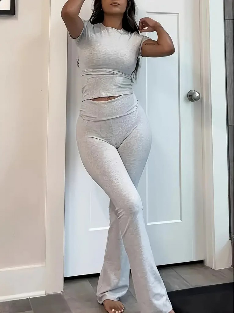 Kadın Kısa Kollu Bisiklet Yaka Alt Ispanyol Paça Viskon Ikili Takım