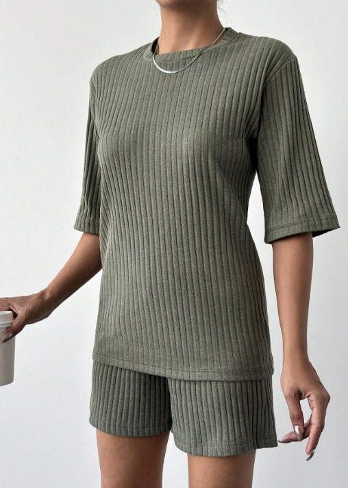 Kadın Kısa Kollu Bisiklet Yaka Kaşkorse Bluz şort Ikili Takım