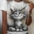 Kadın Kısa Kollu Bisiklet Yaka Kedi Baskılı Süprem Bluz