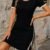 Kadın Kısa Kollu Bisiklet Yaka Yandan Yırtmaçlı Renkli şerit Detay Janjan Krep Elbise