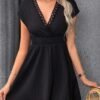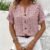 Kadın Kısa Kollu çentikli V Yaka Ve Düğme Detaylı çiçek Desenli Süprem Bluz