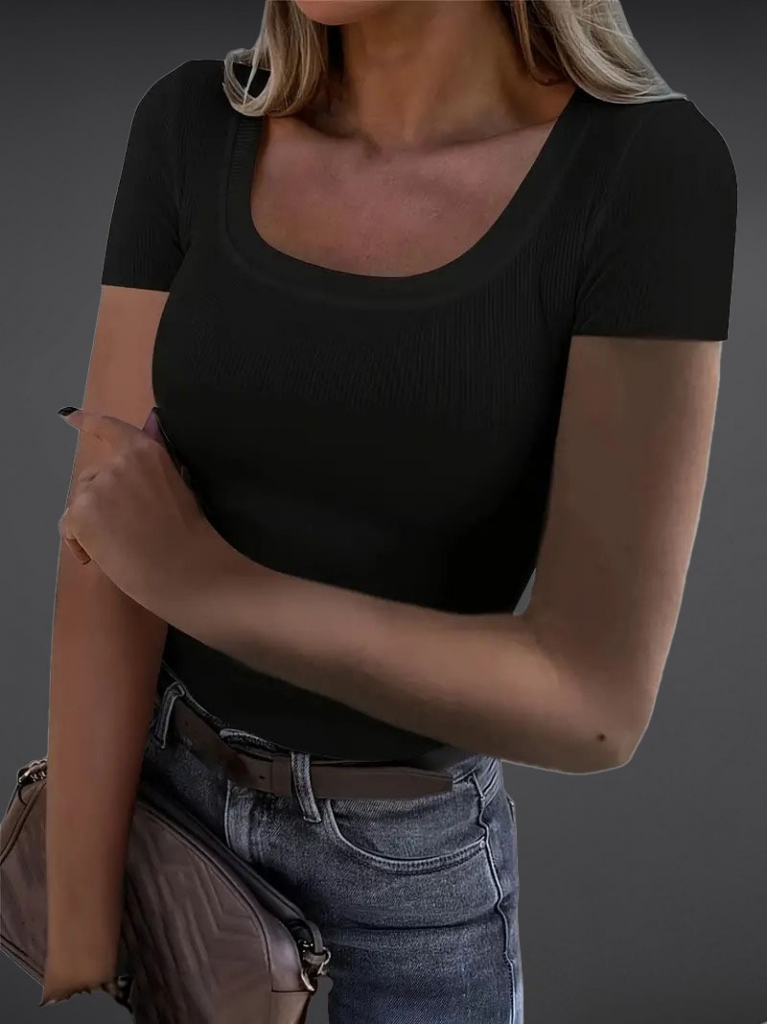 Kadın Kısa Kollu Kare Yaka Basic Kaşkorse Bluz