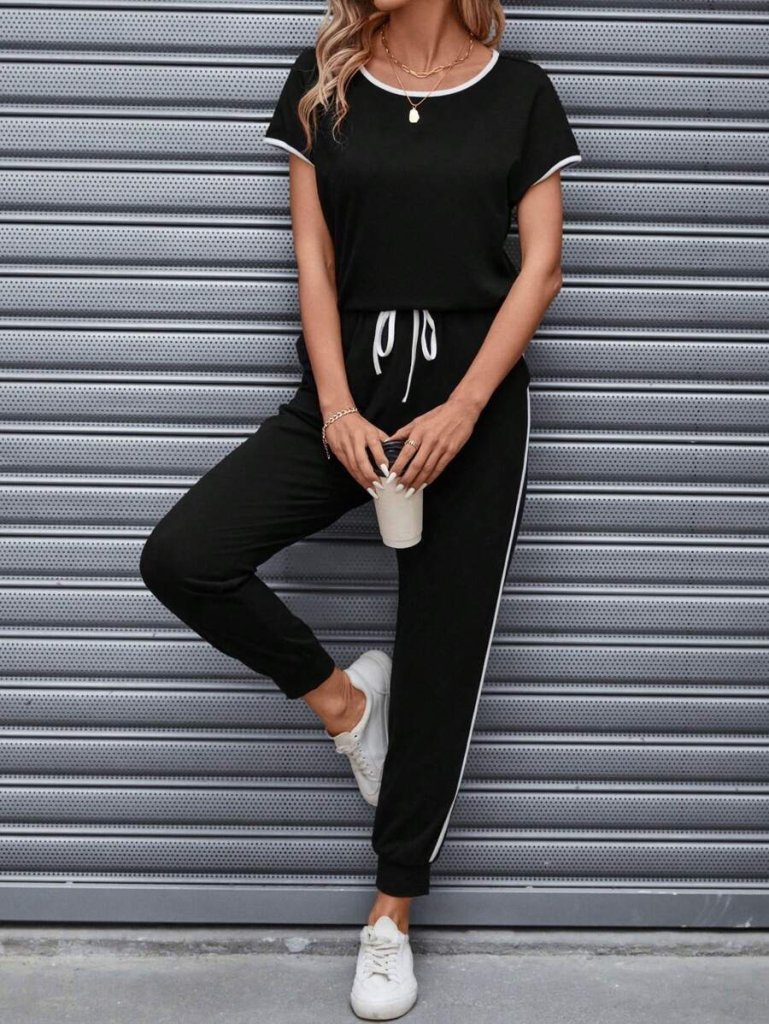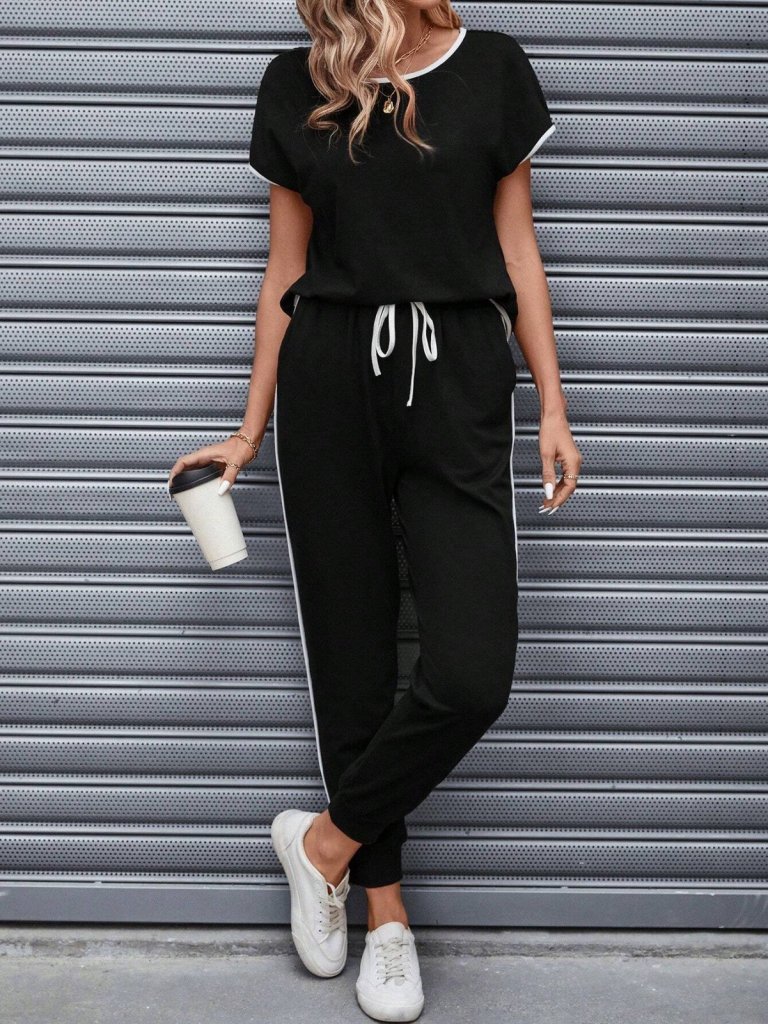 Kadın Kısa Kollu Kayık Yaka Viskon Iki Iplik Bluz Ve Bağcıklı Pantolon Ikili Takım