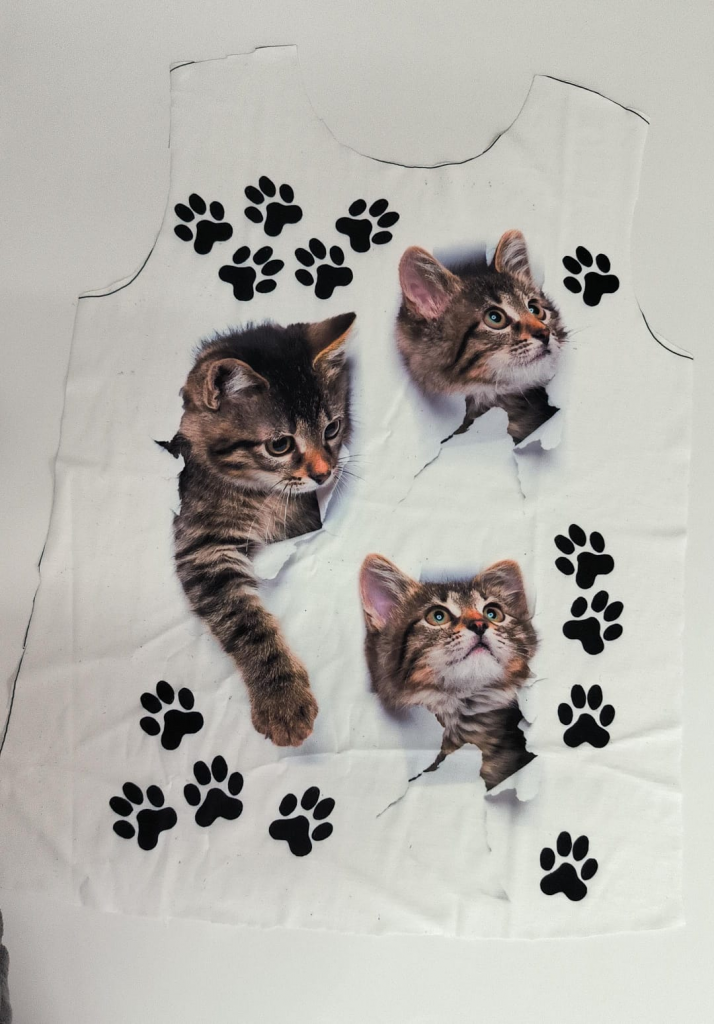 Kadın Kısa Kollu Kedi Ve Pati Baskılı Süprem T-shirt